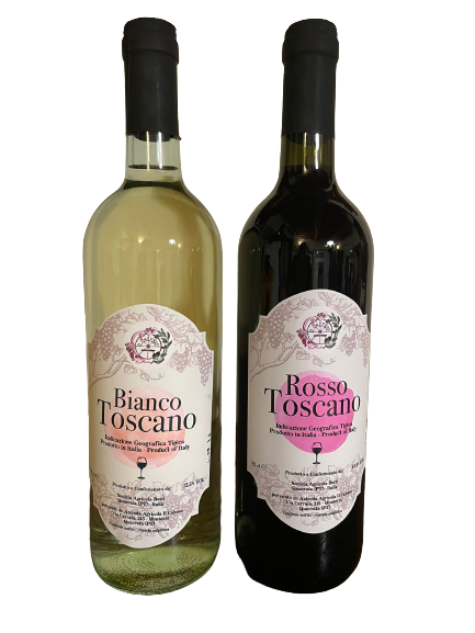 l nostro piccolo vigneto si trova incastonato tra i boschi di acacie e castagni, sul Montalbano, rivolto verso l’alba, quindi ben esposto al calore e alla luce del sole, riparato dai venti, e circondato dai profumi della natura. Si ottiene così un’ottima uva per vinificazione, dolce e concentrata, con un colore brillante, tipico delle vinacce. La vendemmia avviene completamente a mano, percorrendo a piedi i vari filari, accompagnati dalle bigonce in cui si lasciano cadere i grappoli maturi. E mentre alcune ceste vengono scelte per i dolci casalinghi e il tradizionale pan con l’uva, l’uva raccolta viene conferita alle piccole aziende del territorio per la vinificazione in apposite botti in acciaio.I vini così ottenuti sono un bianco ed un rosso Toscano IGT, conservati in bottiglie nella cantina tradizionale con le antiche botti in legno. Qui, nella parte interrata del casolare, la temperatura è costante, sempre attorno ai 15°C, che consentono al vino un’ottima conservazione, evitando brusche variazioni termiche e sbalzi di umidità. Il vino viene servito ai pasti in agriturismo, può essere venduto direttamente in azienda o spedito.